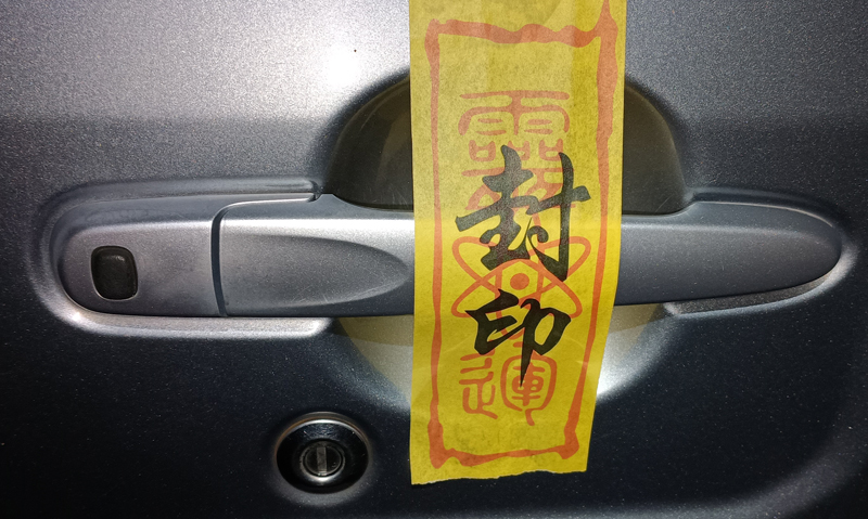 車のドアノブは封印され