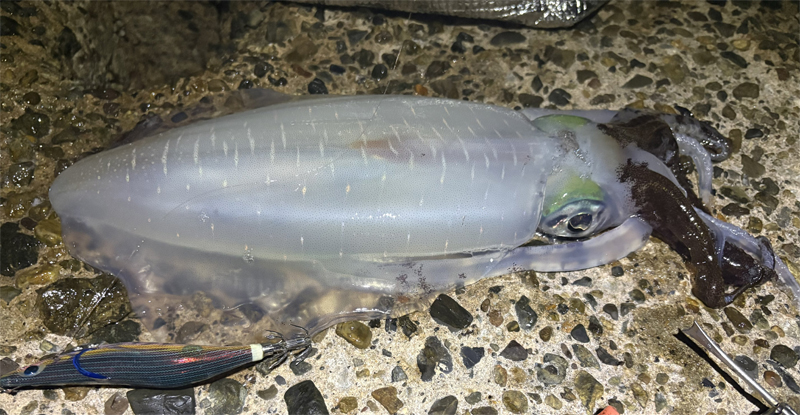 5日のカイゼル氏ガイドの日に伊根エリアにイカ釣りに行っていたかずまろ氏は釣った烏賊持って帰る?と